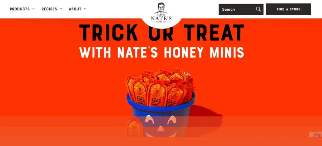 Nature Nate’s is one of the biggest names in the global honey market, and their website reflects their scale and credibility. The site features powerful storytelling around their mission — “To share God’s goodness through honey.” Each section focuses on purity, testing, and traceability, giving buyers confidence that every drop meets strict standards. Their color palette (warm orange and natural tones) reinforces brand identity. Nature Nate’s balances authority and warmth, using both data-driven transparency and emotional storytelling — a combination that drives conversion and brand loyalty.