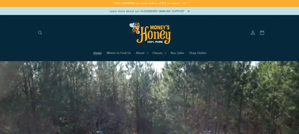 Money’s Honey captures the heart of small-batch beekeeping from Middle Georgia. Their website focuses on community, tradition, and local craftsmanship. With a simple yet heartfelt design, it features warm colors, natural textures, and lifestyle photography that highlights how honey connects people and nature. Each product page emphasizes purity, origin, and flavor profile, helping customers choose the right jar for their needs. It’s a shining example of how small regional honey producers can compete online through authenticity and storytelling.