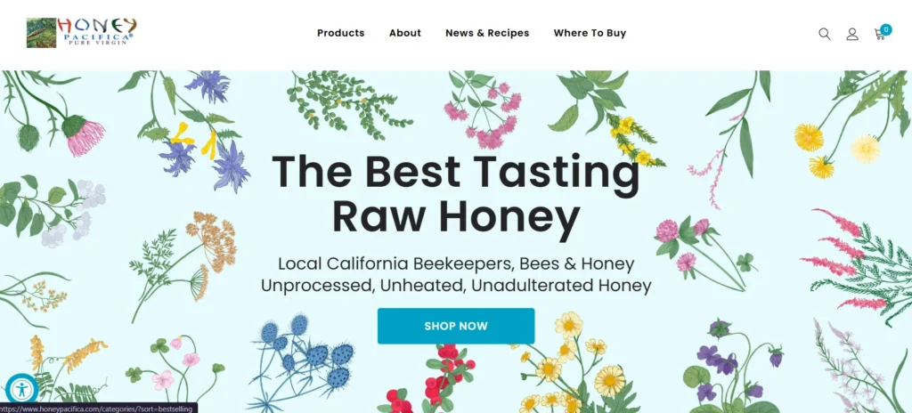 Honey Pacifica’s website is a model of purity and clarity. Their brand stands for unheated, unfiltered honey sourced directly from California. The design uses earthy tones and real photography — no stock images — which makes the experience feel genuine. Each product page educates visitors on the health benefits of raw honey and explains why cold-pressed honey retains more natural enzymes. The brand successfully blends local pride with science-backed credibility, making it ideal for health-conscious buyers.