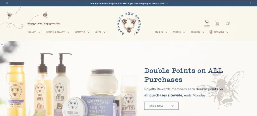 Savannah Bee Company is known for blending luxury and nature in its brand identity. Their website is beautifully designed, featuring golden tones, cinematic photography, and elegant fonts. Beyond honey, they sell body care and gift items derived from beeswax and royal jelly — expanding their eCommerce reach. The layout is refined and user-friendly, emphasizing lifestyle and sensory experience. This site proves that honey can be positioned as both a food and a luxury wellness product, thanks to cohesive design and premium branding.