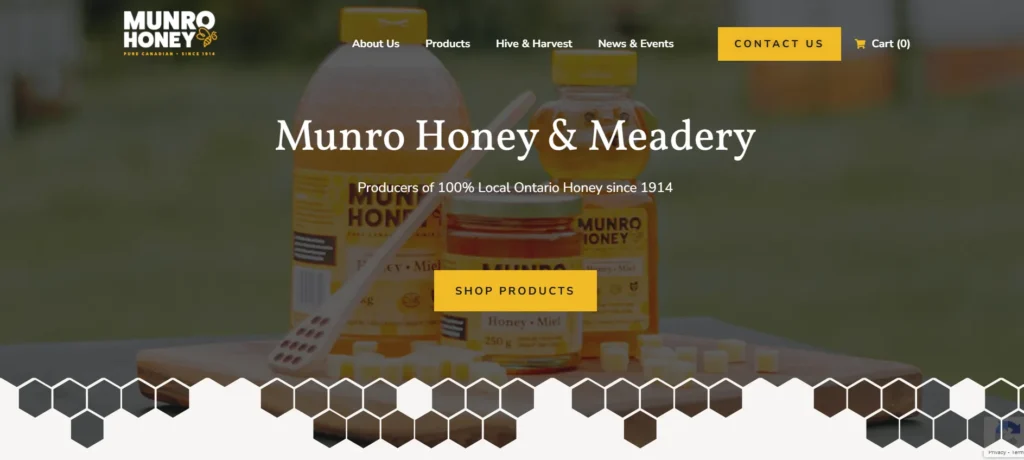 Munro Honey represents over a century of Canadian beekeeping excellence. Their website emphasizes family tradition, craftsmanship, and authenticity. Visitors can explore categories like Creamed Honey, Honeycomb, and Bee Pollen, all presented with warm visuals and informative text. The design combines rustic charm with modern eCommerce usability. The storytelling about generations of beekeepers adds emotional weight and builds brand heritage, which customers value highly when buying natural products online.